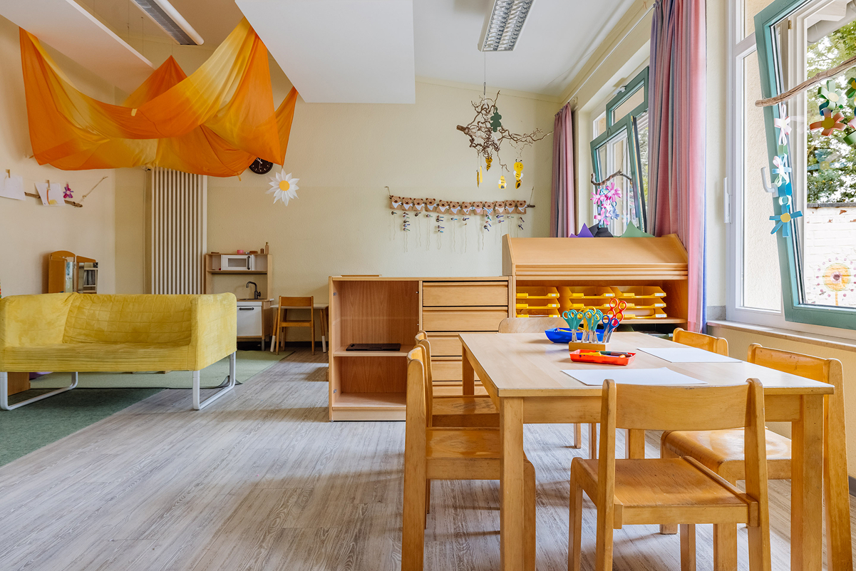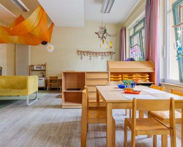 Unser teiloffenes Konzept fördert Selbstbestimmung und Partizipation. Jedes Kind kann selbst entscheidet, wo und womit es spielen möchte. Durch gemeinsame Regeln und eigene Projekte erfahren die Kinder Selbstwirksamkeit und lernen, Verantwortung zu übernehmen. Der Tag beginnt in der Stammgruppe mit einem Begrüßungsritual, bevor unsere Aktionsräume öffnen und vielfältige Entfaltungsmöglichkeiten bieten.