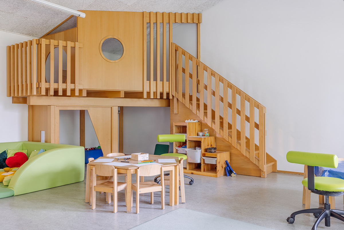 Wir arbeiten nach einem offenen Konzept, das unser Haus in verschiedene Funktionsbereiche gliedert. Hier können die Kinder in der großen Bewegungshalle aktiv sein, im Atelier ihrer Kreativität freien Lauf lassen oder im Bauwagen hämmern und sägen. Zudem bieten das Spielzimmer und das Nest altersgerechte Schwerpunkte. Im Außengelände gibt es nicht nur zahlreiche Spielmöglichkeiten, sondern auch die Gelegenheit, Tee und andere Nutzpflanzen in einem Hochbeet anzubauen. Das offene Konzept basiert darauf, den Kindern mehr Entscheidungsfreiheit und individuelle Entfaltungsmöglichkeiten zu bieten. Anstatt feste Gruppenstrukturen, können die Kinder ihre Aktivitäten selbst wählen und frei entscheiden.