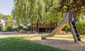 Wir beherbergen 85 Kinder im Alter von 2-6 Jahren. In unseren Gruppen – einer U3-Gruppe und drei Ü3-Gruppen – bieten wir Platz für individuelle Förderung und Betreuung. Die Kinder erleben bei uns eine pädagogische Arbeit, die auf dem situationsorientierten Ansatz basiert und Elemente der teiloffenen Arbeit integriert. Besondere Bedeutung legen wir auf die Partizipation der Kinder. Sie werden aktiv in Entscheidungen einbezogen, sei es bei der Auswahl des Mittagessens, der Planung von Nachmittagsangeboten oder bei der Wahl von Spielmaterialien. Durch unser gruppeninternes sowie hausübergreifendes Beschwerdesystem geben wir den Kindern die Möglichkeit, ihre Bedürfnisse und Wünsche auszudrücken und Verantwortung zu übernehmen.