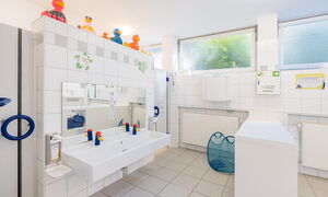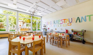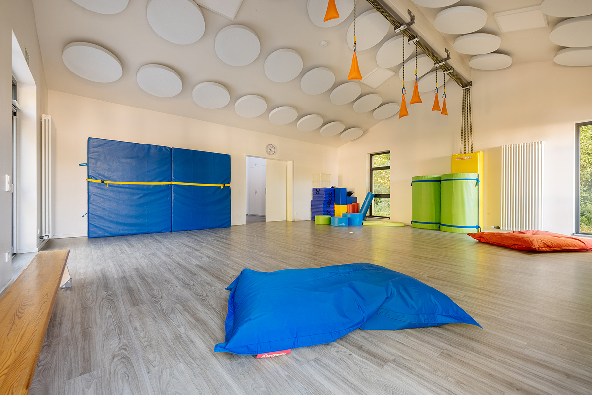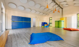 Beim Betreten unserer Kita gelangen Sie durch den Haupteingang in den Anbau, wo unser gemütliches Elterncafé zum Verweilen einlädt. Hier können Eltern in angenehmer Atmosphäre Kaffee oder Tee genießen und sich austauschen. Ein besonderes Highlight unseres Hauses ist der vielseitig nutzbare Mehrzweckraum. Dieser dient als Bewegungsraum, Veranstaltungsort für gemeinsame Feste, Wortgottesdienste sowie als Treffpunkt für unsere Eltern-Kind-Aktivitäten und die Krabbelgruppe "Griffbereit".