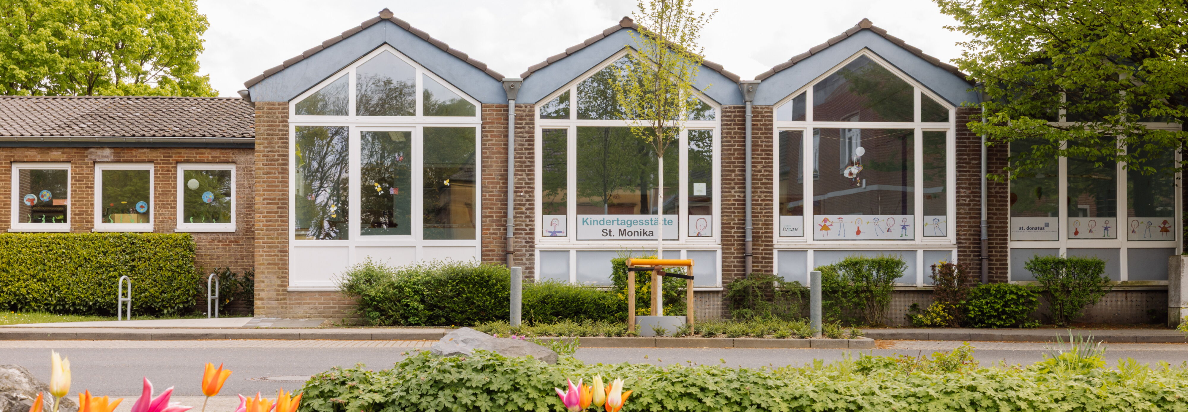 In unserer lebendigen Kindertageseinrichtung St. Monika erleben Kinder eine fröhliche, bewegungsfreudige und vielfältige Spiel- und Lernwelt in herzlicher Atmosphäre. Unser zentral in Aachen-Brand gelegener Kindergarten – in direkter Nachbarschaft zur Kirche St. Donatus, dem Pfarrzentrum, der Pfarrbücherei, dem Marienheim, einem Spielplatz und der Grundschule – ist fest im sozialen und kirchlichen Leben des Stadtteils verankert.