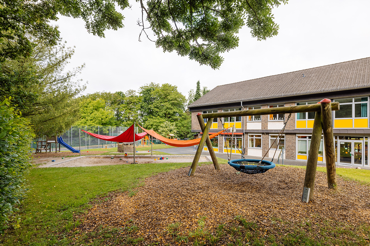 Unsere Kindertageseinrichtung liegt in einem verkehrsberuhigten, familienfreundlichen Wohngebiet, direkt gegenüber der Kirche St. Barbara. Dank unserer naturnahen Lage mit direktem Zugang zum Eschweiler Stadtwald und mehreren großzügigen Spielplätzen in der Umgebung bieten wir den Kindern viel Raum für Bewegung, Erkundung und Naturerfahrung. Unser weitläufiges Außengelände mit Hochbeet lädt zum Entdecken und Erleben ein.