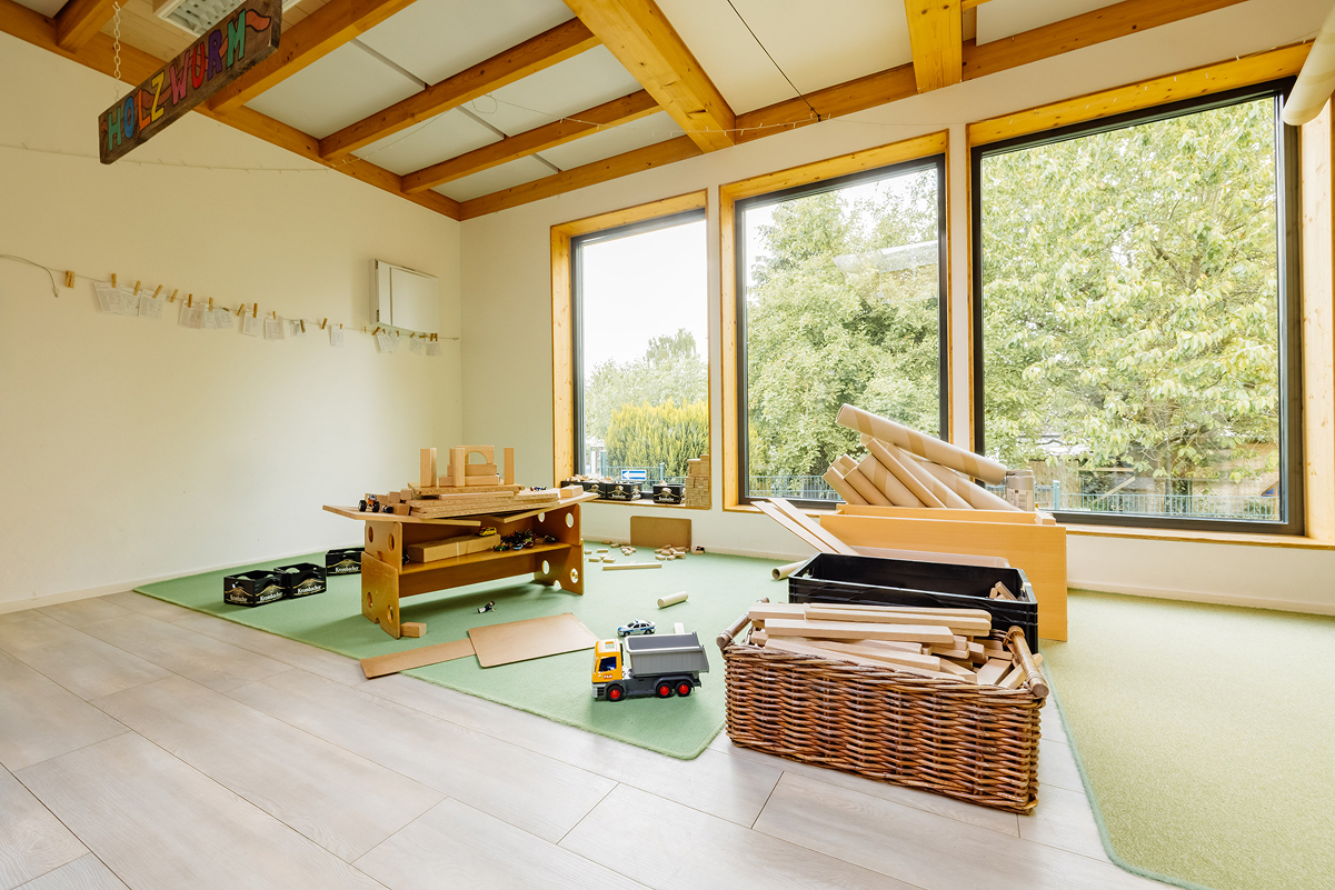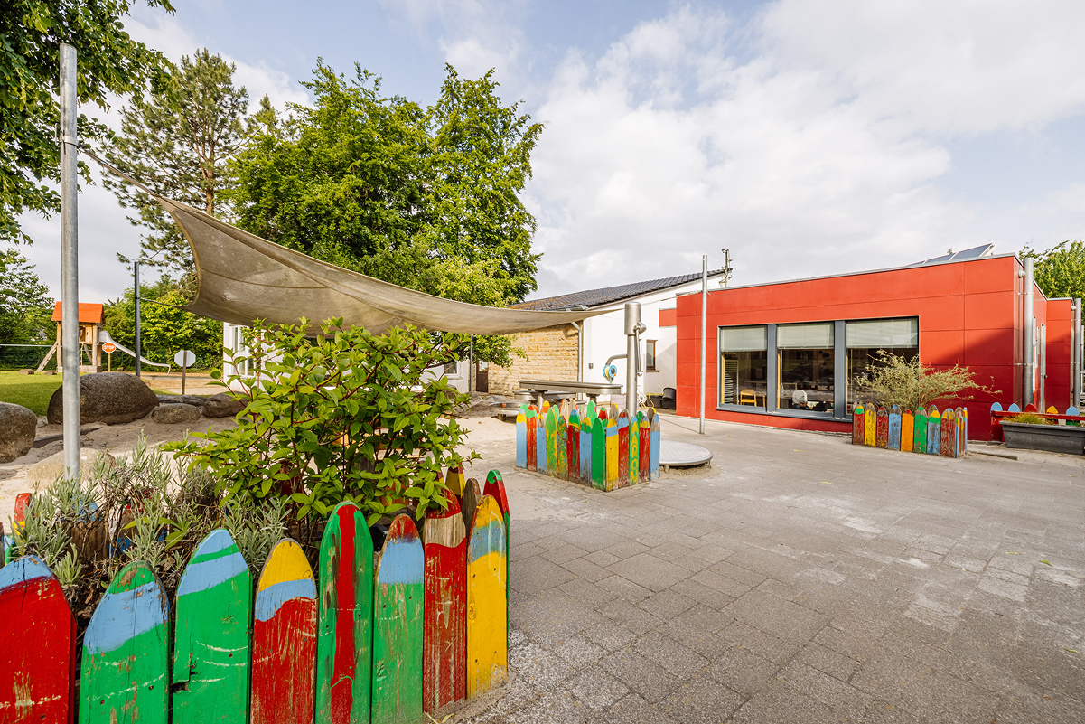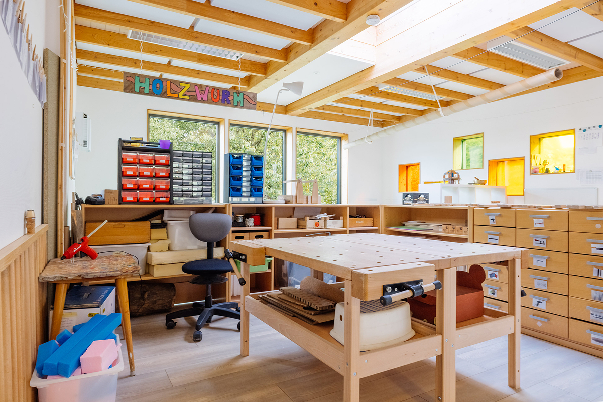 In unseren Werkstatträumen erleben die Kinder die 10 Bildungsbereiche durch kreatives Forschen, Entdecken und Ausprobieren. Unser großes Außengelände mit Niedrigseilgarten, Verkehrsübungstrecke, Wasserspielanlage, Fußballtoren, Schaukel und Rutschenturm lädt zu Bewegung und Abenteuern ein.