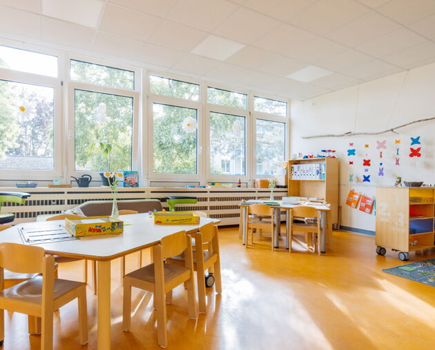 In vier Gruppen, darunter eine Nestgruppe für die Jüngsten, begleiten wir die Kinder in ihrer individuellen Entwicklung. Wir arbeiten teiloffen, sodass jedes Kind seinen eigenen Weg finden und sich nach seinen Bedürfnissen entfalten kann. Gemeinschaft, Bewegung und Naturerfahrung stehen bei uns im Mittelpunkt. Ob beim Spielen auf dem Außengelände, bei Spaziergängen oder beim Klettern auf Baumstämmen – die Kinder erleben eine abwechslungsreiche und spannende Zeit.