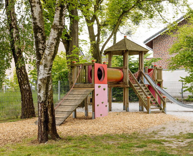 Unsere Kita liegt inmitten einer naturnahen Umgebung mit dem Kalvarienberg, weitläufigen Feldern und Wiesen in direkter Nähe. Jedes unserer Häuser verfügt über ein großes Außengelände mit einem alten Baumbestand, riesigen Sandkästen und viel Platz zum Spielen und Entdecken. Hier können die Kinder ihre Welt aktiv erkunden, sich ausprobieren und täglich neue Erfahrungen sammeln. „Lernen ist Vorfreude auf sich selbst…“so sagen wir mit Peter Sloterdijk.