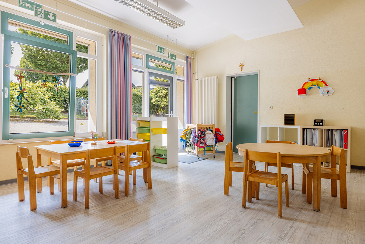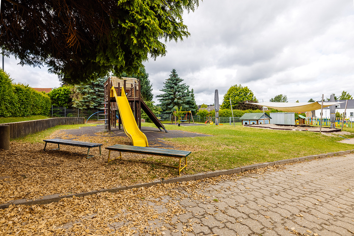Unser Haus liegt im Herzen des Dorfes, direkt neben der Kirche St. Cäcilia, und ist fest in die Dorfgemeinschaft eingebunden. In unserer Kita erleben Kinder Geborgenheit, Gemeinschaft und die Freude am Entdecken. Besonders die Natur spielt eine große Rolle in unserem pädagogischen Konzept. Die Kinder verbringen viel Zeit im Freien, beobachten, erkunden und begreifen ihre Umwelt. Dies hilft ihnen, Zusammenhänge zu verstehen und gibt ihnen Sicherheit in ihrer Entwicklung.