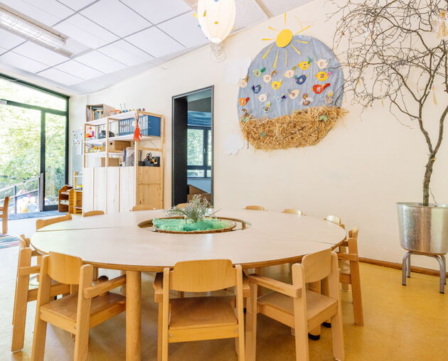 Besonders stolz sind wir auf unsere Nestgruppe, die schon die Kleinsten ab einem Jahr behutsam auf den Kita-Alltag vorbereitet. Hier erleben sie Geborgenheit, erste soziale Kontakte und eine sanfte Eingewöhnung. Im Ü3-Bereich setzen wir auf ein teiloffenes Konzept, das den Kindern ermöglicht, sich nach ihren Interessen und Bedürfnissen zu entfalten. Durch gezielte Impulse fördern wir ihre Neugier, Kreativität und Eigenständigkeit, während klare Strukturen und einfache Regeln ihnen Sicherheit im Alltag geben.