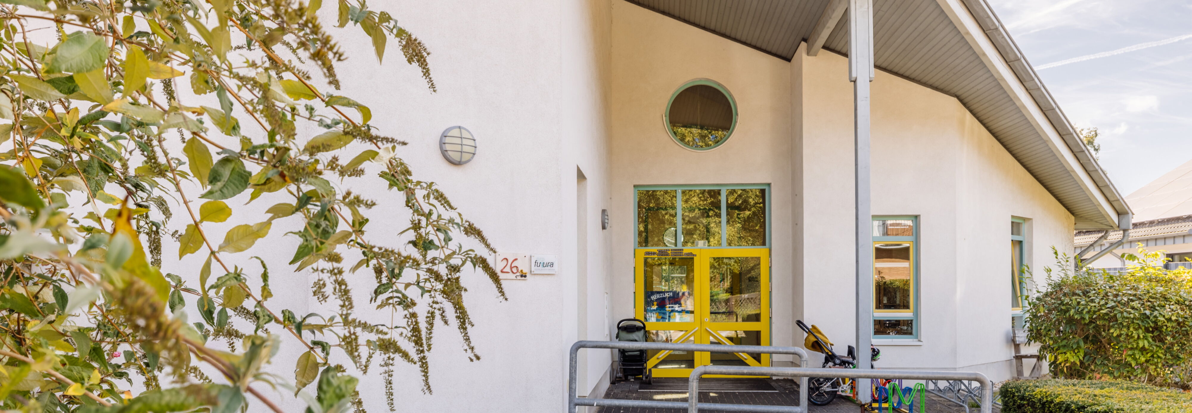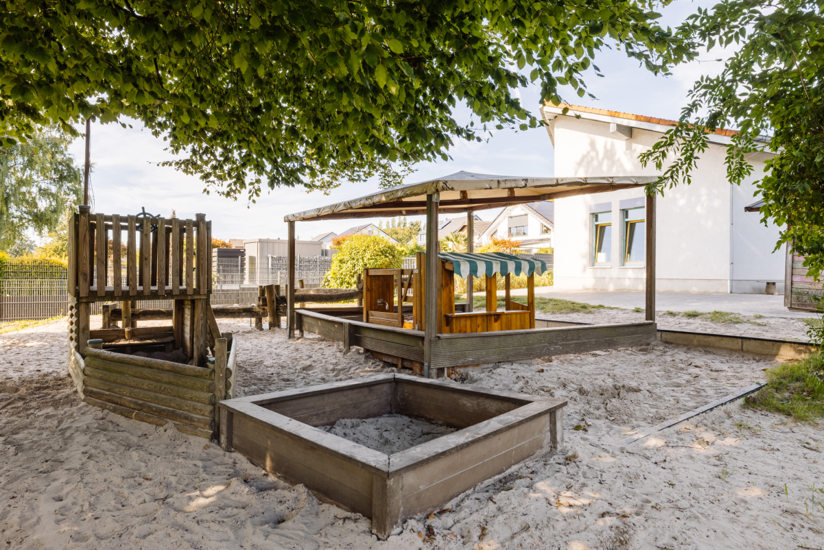 Unser großes Haus bietet viel Raum zum Spielen, Bewegen und Entdecken. Hohe Decken und große Fenster schaffen eine helle, einladende Atmosphäre. Auch unser weitläufiges Außengelände lädt dazu ein, sich zu bewegen, zu verstecken und die Natur zu erforschen. Die nahegelegene Kirche „St. Heinrich“ ist fußläufig erreichbar und bereichert unser gemeinsames Leben.
