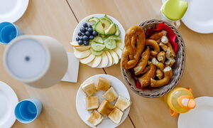 Beim Betreten unserer Kita gelangen Sie durch den Haupteingang in den Anbau, wo unser gemütliches Elterncafé zum Verweilen einlädt. Hier können Eltern in angenehmer Atmosphäre Kaffee oder Tee genießen und sich austauschen. Ein besonderes Highlight unseres Hauses ist der vielseitig nutzbare Mehrzweckraum. Dieser dient als Bewegungsraum, Veranstaltungsort für gemeinsame Feste, Wortgottesdienste sowie als Treffpunkt für unsere Eltern-Kind-Aktivitäten und die Krabbelgruppe "Griffbereit".